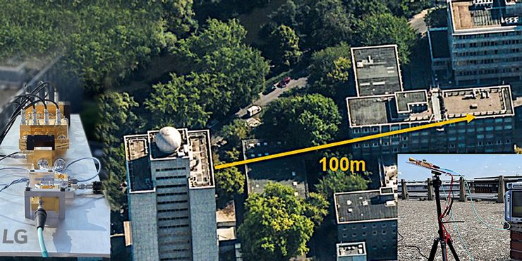 La última prueba de LG tuvo lugar en los tejados de Berlín y envió datos a más de 100 metros en colaboración con Fraunhofer-Gesellschaft, el laboratorio de investigación aplicada más grande de Europa. LG declaró en un comunicado de prensa que el mayor obstáculo para 6G es la cantidad de energía necesaria para transportar una señal estable entre dos dispositivos. Como tal, la compañía desarrolló un amplificador de potencia con el Instituto Fraunhofer Heinrich Hertz y el Instituto de Tecnología de Berlín. La prueba también tuvo éxito al demostrar la tecnología de formación de haces adaptativa que altera la dirección de la señal de acuerdo con los cambios en la posición del canal y el receptor.