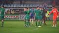 Al final del encuentro ambos equipos se acercaron a los fondos, hubo aplausos e intercambio de camisetas aunque el premio más suculento se lo llevó David
