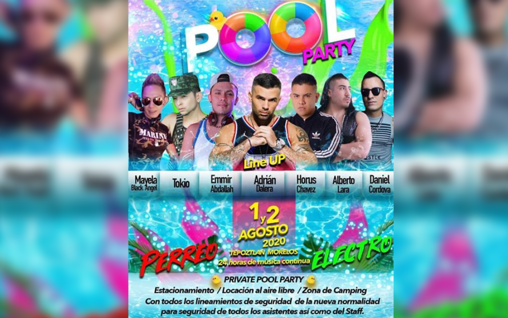 Pese a la pandemia de Covid-19 y las medidas de seguridad sanitaria impuestas en los municipios de Morelos, habitantes de la Ciudad de México promocionan a través de sus redes sociales una “pool party” que de acuerdo con sus publicaciones pretenden realizar en Tepoztlán.