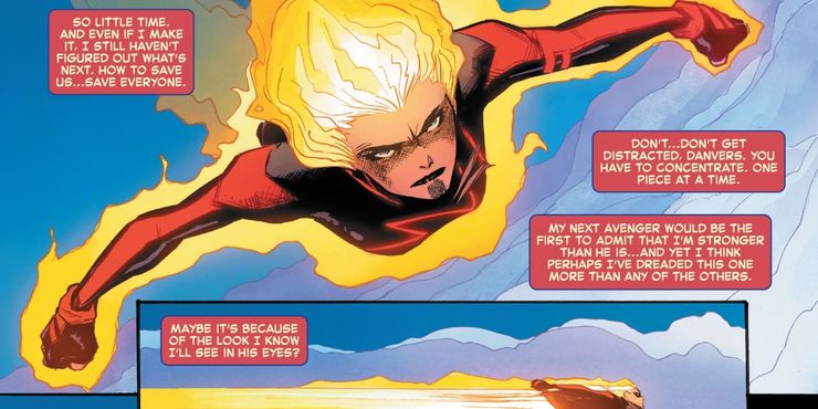 En Capitana Marvel #15 por Kelly Thompson y Lee Garbett, el Capitán Marvel se ve obligado a matar a todos los miembros de los Vengadores y entregar sus cuerpos al villano conocido como Vox Supreme. Como los lectores ya descubrieron, Carol en realidad no está matando a los Vengadores, sino que los está dejando inconscientes y llevándolos a una dimensión de bolsillo fuera del alcance de Vox Supreme, y luego entregando al villano clones desmantelados de los ‘héroes caídos’. La única advertencia a este plan (debido al dispositivo de monitoreo Vox Supreme implantado en un traje similar al simbionte que el Capitán Marvel se ve obligado a usar) es que Carol no puede contarles a los Vengadores su plan hasta después de que los noquee y los lleve a la caja fuerte. ubicación, lo que significa que realmente tiene que luchar contra cada uno de ellos. Por eso, este número revela al Avenger al que más teme enfrentar.