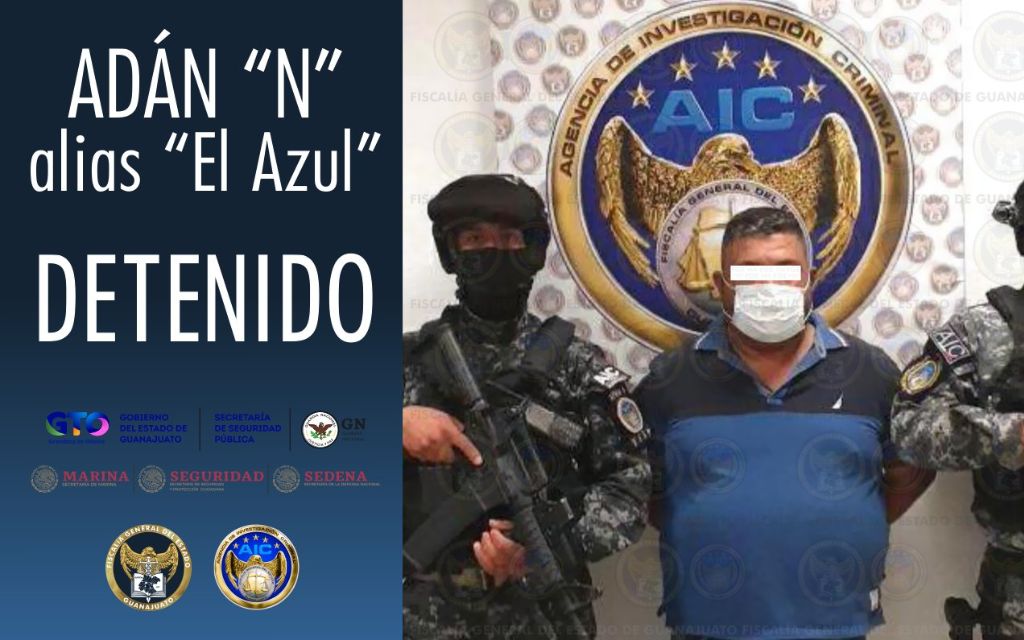 Adán “N”, alias “El Azul”, un presunto nuevo líder del cartel Santa Rosa de Lima fue capturado, informó el gobernador de Guanajuato, Diego Sinhue Rodríguez Vallejo.
