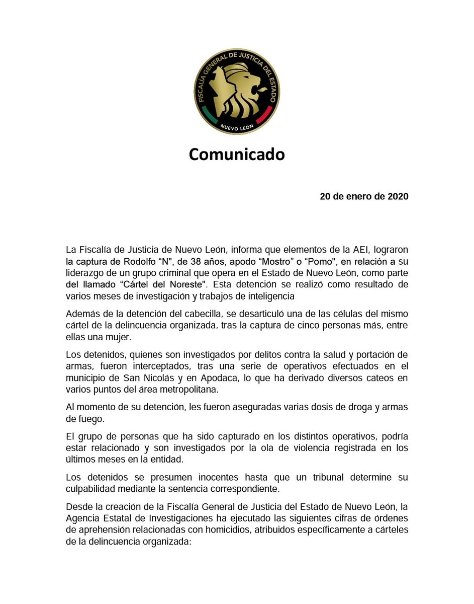 — Fiscalía Nuevo León (@FiscaliaNL) January 20, 2020
