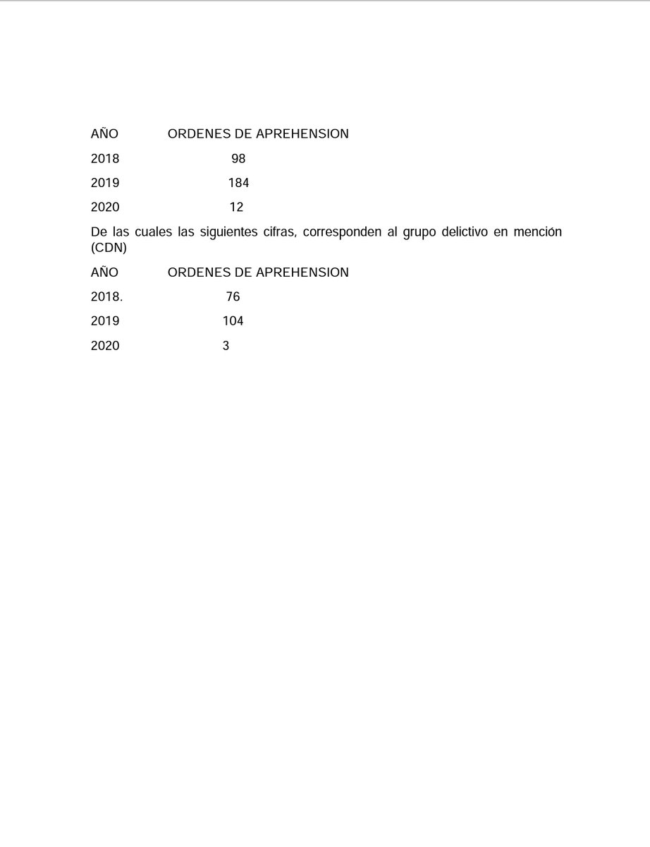 De estas las 98 órdenes cumplimentadas en 2018, 76 correspondieron a miembros del CDN, y de las 184 de 2019, 104 fueron para integrantes de este grupo delincuencial.