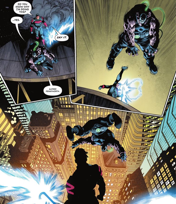 Mientras que Bane fue asesinado durante el reciente ataque de Scarecrow en Arkham Asylum, Task Force Z lo ha traído de regreso. Sin embargo, el programa solo le dio suficiente resina de Lázaro para ser devuelto como un monstruo no-muerto casi sin sentido para ser controlado. Dicho esto, el nuevo Grupo de trabajo Z # 3 ve a Bane obteniendo suficiente resina para recuperar su habla y sus recuerdos, lo que llevó a Red Hood a vengarse finalmente de Bane ahora que el villano está lo suficientemente vivo como para experimentarlo realmente. Como tal, Jason Todd asesina a Bane tirándolo del techo de un rascacielos. Si bien Batman normalmente está en contra de matar, parece que este podría ser un asesinato que toleraría considerando que Jason acaba de matar al asesino de Alfred (quien probablemente volverá a la vida como un zombi de todos modos).