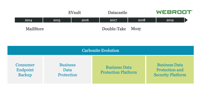 La compañía cree que al combinar su servicio de copia de seguridad en la nube con los servicios de Webroot. herramientas de seguridad de punto final, dará a los clientes una solución más completa. La historia de Webroot en realidad es anterior a la nube, habiendo sido lanzada en 1997. La compañía privada reportó $ 250 millones en ingresos para el año fiscal 2018, según los datos proporcionados por Carbonite. . Eso se combinará con los $ 296.4 millones de Carbonite en ingresos para el mismo período.