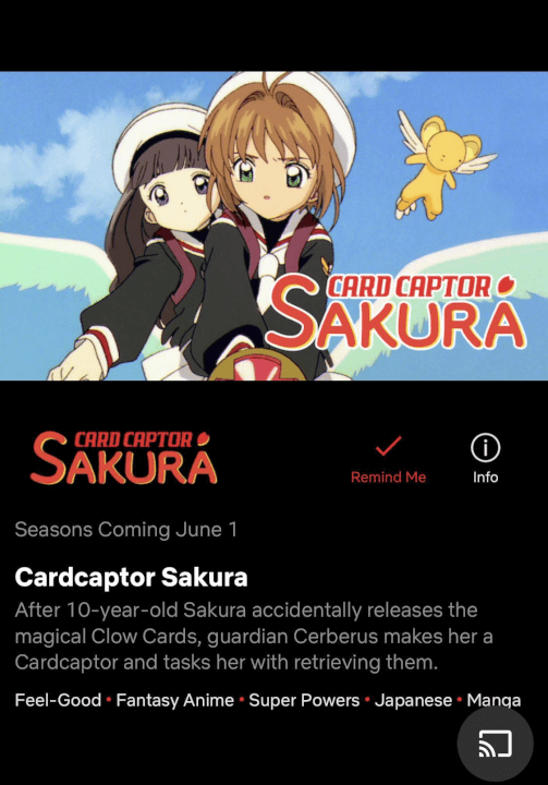 No se ha revelado si Netflix UK, Australia o Canadá también recibirán varias temporadas de Cardcaptor Sakura.