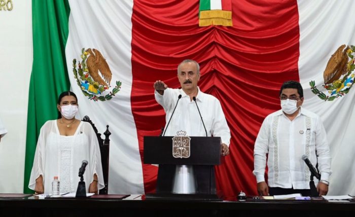 El pasado viernes 27 de octubre Merino tomó protesta como gobernador provisional ante la Comisión Permanente del Congreso local por un periodo de 60 días. Este martes lo hizo frente al pleno del Congreso durante la sesión solemne.