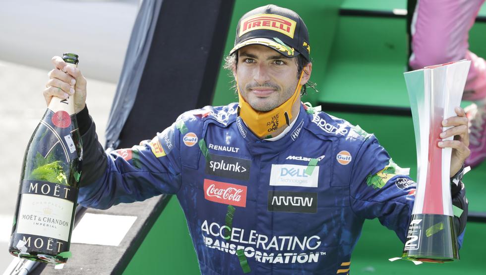 “Es una sensación agridulce”, así definía Carlos Sainz lo que sentía al término de un GP de Italia de F1 2020 que jamás va a olvidar. Si no hubieran entrado coches de seguridad en pista, Carlos tenía ya amarrada la segunda plaza por detrás de Hamilton. La sanción del inglés por entrar al pit lane cuando estaba cerrado con el ‘safety car’ por el abandono de Magnussen le dejaba como líder virtual. Podía ganar la carrera. Pero finalmente, una inesperada bandera roja por un accidente de Leclerc le pasaba de la segunda a la sexta plaza a falta de 27 vueltas. Ahí, superó a todos sus rivales hasta quedarse a solo 4 décimas de Gasly. “Una vuelta mas…”, decía por radio el español. Sabía que se le acababa de escapar su primer triunfo en la F1 tras una carrera perfecta en la que Pierre tuvo mucha suerte con esa bandera roja, que le quitó la victoria a un Carlos que pese a ello, debe estar muy satisfecho por su segundo podio en la F1.