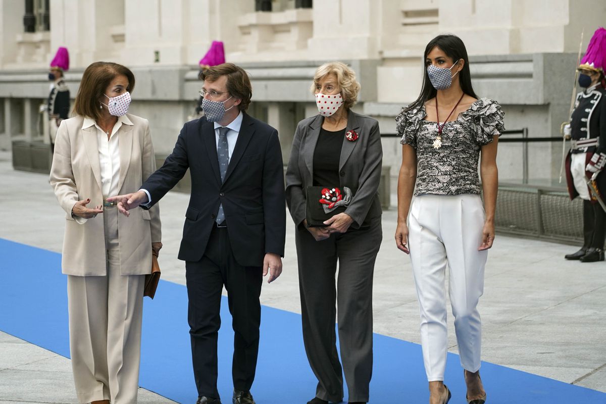 Aunque las fiestas patronales sigan rebajadas por segundo año consecutivo a causa de la pandemia, la agenda institucional se ha mantenido con las medallas de honor a las dos exalcaldesas de la capital, Ana Botella (PP) y Manuela Carmena (Ahora Madrid), que han tenido como anfitrión al actual regidor, José Luis Martínez-Almeida (PP). Ellas han sido las protagonistas de un acto lo más multitudinario posible en cantidad y variedad de invitados en el patio de cristales del Palacio de Cibeles. Carmena ha querido destacar también el hecho de que un equipo de gobierno, como el del PP y Ciudadanos, alejado de su “visión e ideología”, haya agradecido su labor al frente del Consistorio.