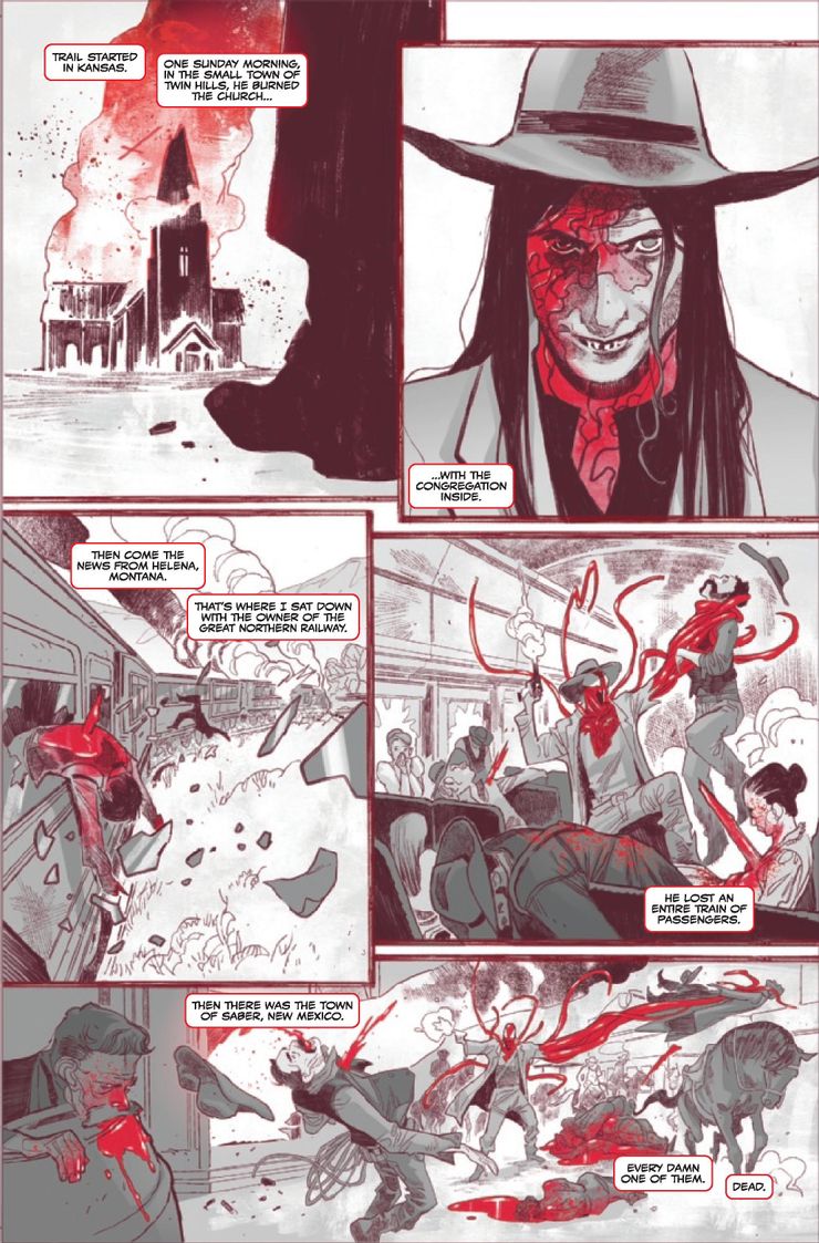 El oeste de Estados Unidos en el siglo XIX era violento y sin ley, por lo que tener un villano que encarna esos conceptos como Carnage en un entorno así tiene sentido. Mientras el agente de la ley se abre paso por el paisaje, relata los muchos actos atroces de Carnage, creando una atmósfera de pavor y terror. Carnage es uno de los asesinos más retorcidos del Universo Marvel, matando personas según lo dictan sus caprichos. Al igual que los héroes del 21S t siglo, este representante de la ley no puede comprender el nivel de maldad con el que está lidiando, y la vista previa deja en claro que una confrontación entre los dos es inevitable.