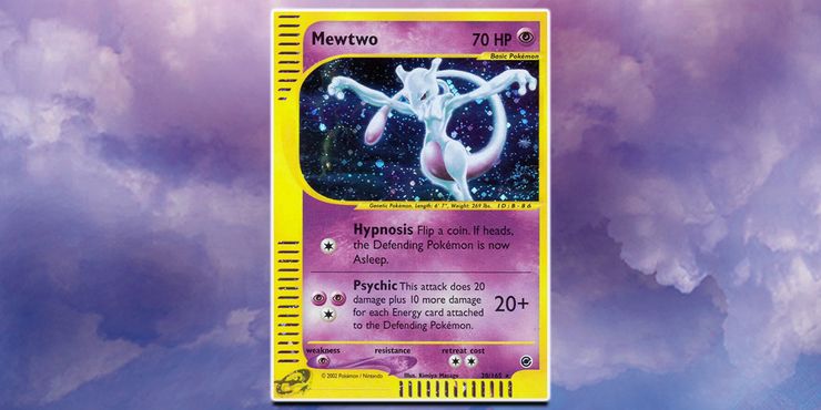 Para colaborar con el nuevo complemento Nintendo e-Reader de Game Boy Advance, The Pokémon Company lanzó la variante de tarjeta e-Series del JCC en 2002. Expedición Pokémon fue la primera expansión de la serie e que se lanzó en la colaboración y fue una desviación importante del clásico JCC diseños de tarjetas Las tarjetas de la serie e presentaban un borde amarillo único que el complemento de Gameboy Advance podía deslizar y leer. pokémon rojo y azul Kanto Legendary Mewtwo fue uno de los primeros legendarios en debutar en el formato e-Series y su tarjeta presenta increíbles ilustraciones de veteranos. destino neo JCC artista Kimiya Masago.