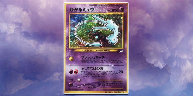 japonés JCC los coleccionistas que recogieron la edición de mayo de 2001 de CoroCoro Comic fueron recompensados con la tarjeta promocional Shining Mew. El hermoso artículo de coleccionista está cubierto con motas de papel de aluminio en cada pulgada de la tarjeta y tiene una impresionante obra de arte de Gen 1 Kanto Mythical Pokémon Mew, responsable de la popularidad de la serie, flotando a través de un fondo de galaxia cósmica. El CoroCoro Comic no es solo una de las mejores promociones que se haya lanzado en el JCC, pero también es un competidor para una de las cartas Pokémon más atractivas de todos los tiempos. Ver esta tarjeta en persona es una experiencia en sí misma, ya que los destellos del arcoíris realmente saltan de la tarjeta.