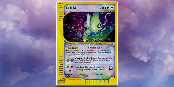La serie e-Card también incluyó el debut de la nueva variante rara Pokémon Cristal, que presenta una hermosa lámina holográfica que se extiende por toda la tarjeta. Por lo tanto, no debería sorprender que las tarjetas Crystal raras se hayan convertido desde entonces en una de las más deseables. JCC coleccionables de esa generación. Sin embargo, por alguna razón, la versión Crystal de Gen 2 Johto Mythical Pokémon Celebi no ha logrado generar mucho dinero. En 2022, la tarjeta Crystal Celebi se vendió por tan solo $ 200 sin calificar y solo se vendió por alrededor de $ 1,000 para las versiones calificadas. En comparación, el Crystal Charizard del mismo set puede venderse por $15,000. Su bajo rendimiento es confuso, ya que Celebi es un Pokémon mítico popular y las cartas de cristal son notoriamente difíciles de encontrar debido a su baja tirada.
