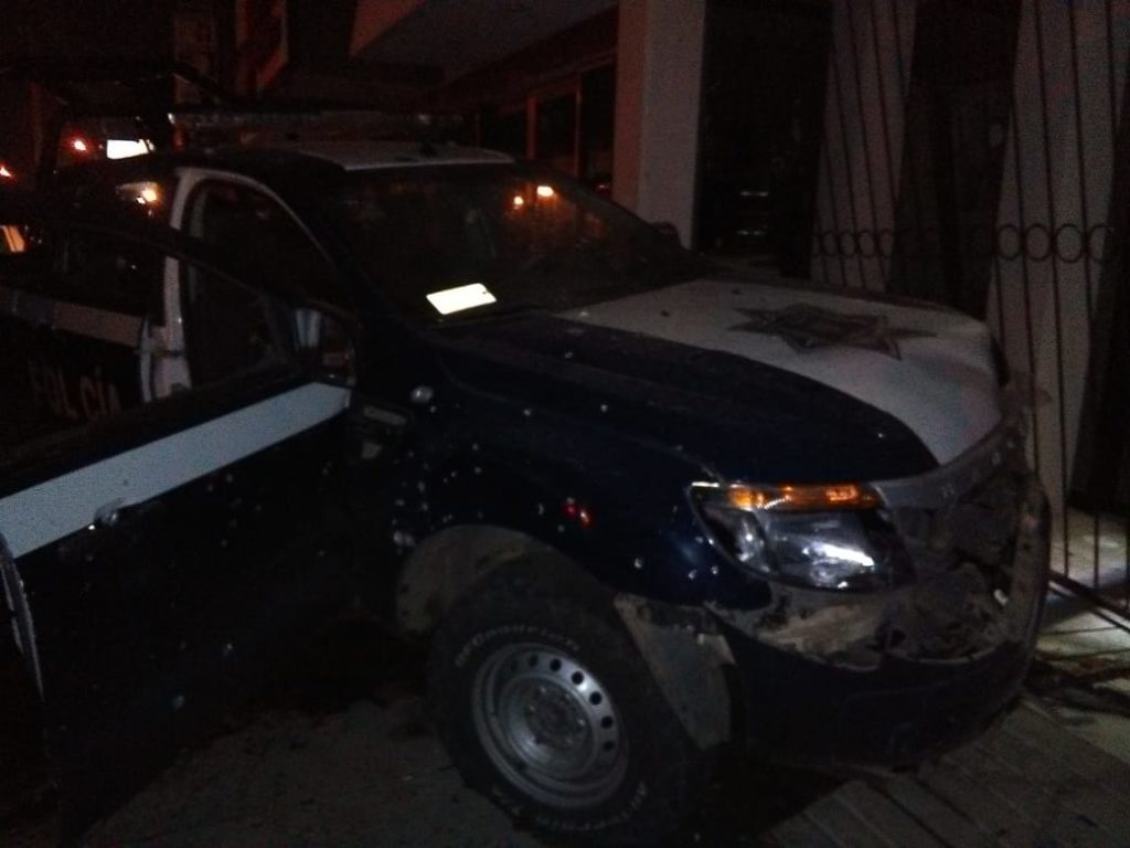 En un comunicado, dio a conocer que aproximadamente a las 3:30 horas, cuando los uniformados circulaban en inmediaciones de la colonia Centro, a bordo de una patrulla, fueron agredidos por un grupo de personas -presuntos integrantes del Cártel Jalisco- que accionaron armas de fuego en su contra.
