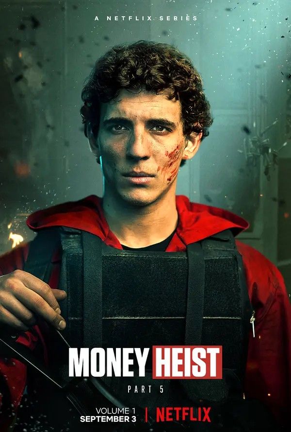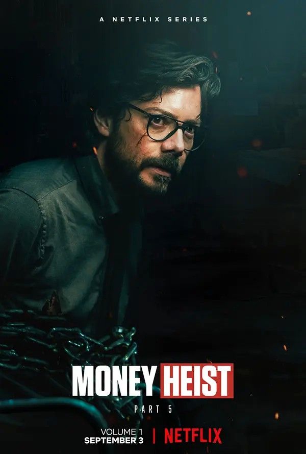 Netflix lanza un lote de nuevos carteles de personajes para la quinta temporada de Money Heist, mostrando al profesor y su equipo de ladrones de bancos.
