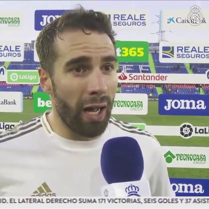 Carvajal destacó que el Getafe “nos dio mucho trabajo pues es un rival complicado y más, en su casa. El equipo trabajó bien y mereció la victoria”. Tuvo palabras de elogio para Courtois, que salvó al Madrid en la primera parte de haber encajado más de un gol.