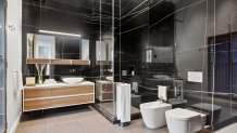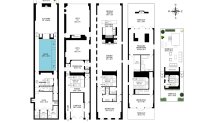 La casa de cuatro pisos abarca más de 5,000 pies cuadrados. Tiene cuatro dormitorios, cinco baños completos y dos medios baños, tres chimeneas, un ascensor, una piscina cubierta y una terraza en la azotea.