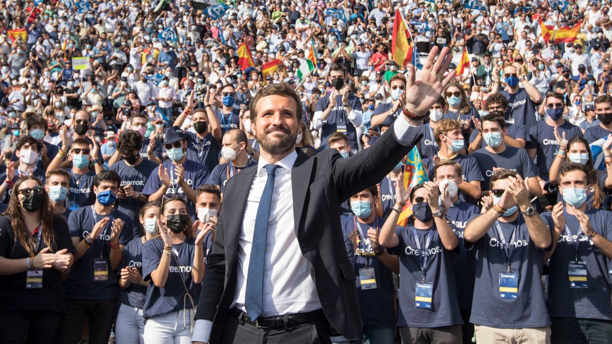 Pablo Casado entierra el viaje al centro y la moderación. Vuelve el Casado de las primarias del PP. El de antes de la ruptura con Vox en la moción de censura, el representante del ala más dura de los conservadores, con planteamientos próximos a los de la extrema derecha. El de la batalla cultural contra la izquierda que enarbola Isabel Díaz Ayuso. El líder del PP dio por superada la apuesta por la centralidad en su discurso de este domingo en la plaza de toros de Valencia ante 9.000 militantes. En el ecuador de la legislatura, Casado se lanza a representar las posiciones más duras de la derecha española para dejar sin espacio a Vox. Memoria histórica, terrorismo, unidad de España, maternidad, inmigración, crítica al feminismo y oposición sin cuartel a la izquierda. Con toques trumpistas ―habló de “devolver el poder a los españoles” ―, el líder de PP desplegó el discurso más duro de su presidencia y amenazó con derogar todas las leyes aprobadas por el Gobierno de izquierdas para superar el “trienio negro” de Pedro Sánchez.