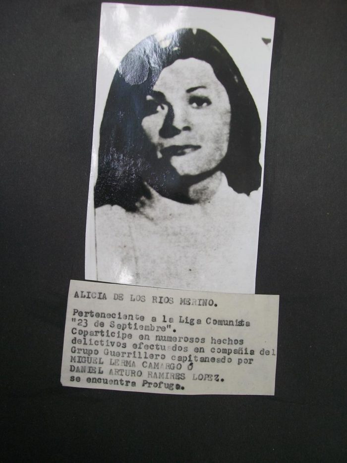 Alicia de los Ríos (madre) fue detenida en la Ciudad de México el 5 de enero de 1978 por elementos de la Dirección de Investigación y Prevención de la Delincuencia (DIPD), y la Brigada Especial (creada ex profeso para combatir a la guerrilla). Herida de bala, tomó el teléfono en una vivienda cercana y se comunicó hasta Chihuahua segundos antes: “Habla Alicia. Me buscas. Ya llegaron por mí”, alcanzó a decirle a su hermana Martha. Alicia (hija) tenía 11 meses.