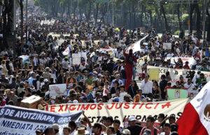 8. “La sociedad mexicana y las familias de los jóvenes estudiantes que lamentablemente se encuentran desaparecidos demandan con toda razón el esclarecimiento de los hechos y que se haga justicia”, dijo el entonces presidente Enrique Peña Nieto el 6 de octubre. Dos días después, miles de manifestantes se congregaron en el Zócalo de la Ciudad de México para exigir la resolución del caso y el regreso de los estudiantes.