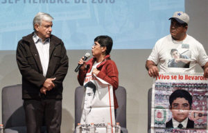 33. El entonces presidente electo, Andrés Manuel López Obrador, se reúne con las familias de los desaparecidos el 26 de septiembre de 2018 y se compromete a investigar a fondo.