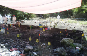29. La fiscalía, basada en su nuevo informe, anuncia el 1 de abril que por lo menos 17 personas fueron incineradas en el basurero. Con base a eso, deciden hacer más pruebas; sin embargo, el GIEI rechaza los hallazgos de la fiscalía.