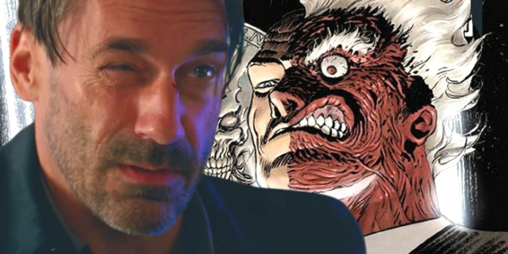 Que es Hombres LocosDon Draper, el papel más famoso y mejor de Jon Hamm, ¿si no un personaje definido por su dualidad? Es el publicista sin esfuerzo, pero también alberga algunos secretos oscuros y conflictos internos. Hamm retrata a la perfección los dos lados de Draper, y es un talento que mostró nuevamente en Edgar Wright. Conductor de bebé, comenzando como un buen tipo antes de encender un interruptor y convertirse en un villano desquiciado más adelante en la película. Es el tipo de arco que se presta fácilmente al personaje de Dos Caras, que oculta su agitación hasta su desfiguración.