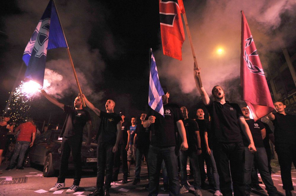 Simpatizantes de Aurora Dorada celebrando el resultado de las elecciones en las que lograron representación en el Parlamento griego.
