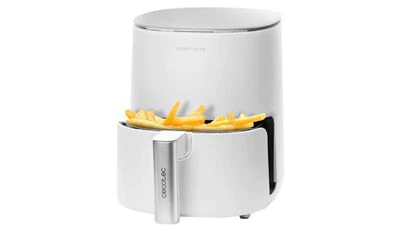 Se trata de una de las freidoras más vendidas en el mercado dadas sus dimensiones, funciones y resultados. Pese a no cocinar con aceite, su capacidad es amplia (2,5 litros) para cocinar grandes cantidades de alimentos. Incorpora pantalla digital, ocho modos preconfigurados y una temperatura que oscila desde los 80 hasta los 200 grados. Su potencia alcanza los 1.400 vatios y su color blanco pega en cualquier cocina.