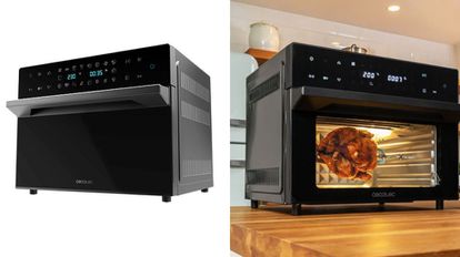 Un accesorio perfecto para cocinas medianas o pequeñas que no cuenten con un horno convencional. Este modelo de sobremesa tiene un tamaño familiar y podrás cocinar en él un pollo o pavo sin trocear. Además, cocinarás mediante aire caliente y sin apenas grasa gracias a sus 1.800 vatios de potencia. Integra hasta 18 funciones preestablecidas para distintas recetas y una puerta de doble cristal de alta resitencia. Incluye multitud de accesorios, como bandeja para freír, hornear, recogegrasas o piedra para pizzas.