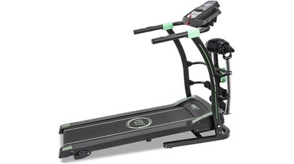 Aprovecha un precio inmejorable y hazte con una cinta de correr para casa muy completa. Con cinturón de masaje vibratorio y mancuernas, dispone de 12 programas predefinidos y alcanza hasta 14 km/h. Podrás elegir entre sus cinco velocidades y entre tres niveles de inclinación, además de seguir las métricas en todo momento en la pantalla LCD. Equipa un sistema hidráulico de plegado automático y unas cómodas ruedas para su transporte. En otras plataformas como Amazon, el producto tiene un precio superior.