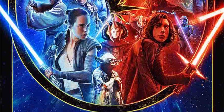 La hoja se asemeja a la utilizada para la Celebración 2017 en que combina las tres trilogías de la saga Skywalker, destacando el enfoque generacional de la franquicia para contar historias. De manera bastante apropiada, llama la atención sobre los lados oscuros y claros que siempre están en guerra, con villanos icónicos como Darth Vader, Kylo Ren y Darth Maul posicionados a la derecha y el heroico Luke Skywalker, Rey y Obi-Wan Kenobi a la izquierda. La inclusión de Lando Calrissian también es agradable de ver, considerando que Billy Dee Williams está repitiendo el papel para Episodio IX y una versión más joven del personaje (interpretada por Donald Glover) estaba en el año pasado Solo: Una historia de Star Wars. Hay mucha emoción en torno al regreso del sinvergüenza y será interesante ver cómo encaja Lando en el final de la trilogía de la secuela.