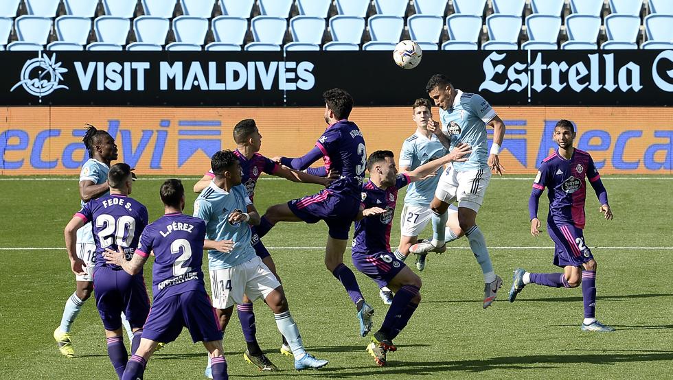 Celta y Valladolid brindaron este domingo un encuentro bronco, con constantes interrupciones del juego, escasísimas ocasiones, muy poco fútbol y un reparto de puntos justo al final de los 90 minutos. O de los 94, porque fue en el cuarto minuto del tiempo añadido cuando Jeison Murillo, central del Celta, anotó el 1-1 definitivo.