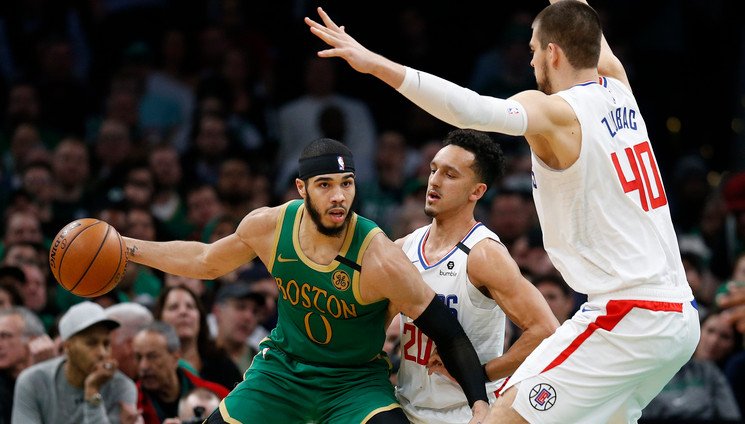Los Celtics perdían por 124-123 en el último minuto de la prórroga de un duelo tremendo con los Clippers. Tatum se encontró de pronto marcado por Landry Shamet y Montrezl Harrell.