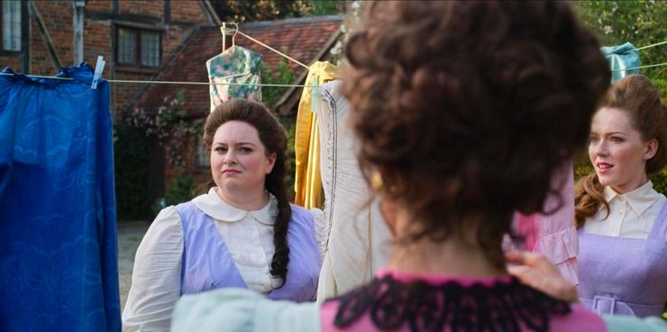 La madrastra adquiere una profundidad sorprendente en esta nueva toma, ya que se transforma de una mujer cruel y egoísta a una que honestamente quiere lo mejor para sus hijas, pero que está retorcida por la amargura de cómo la búsqueda de sus propios sueños no llevó a nada. .