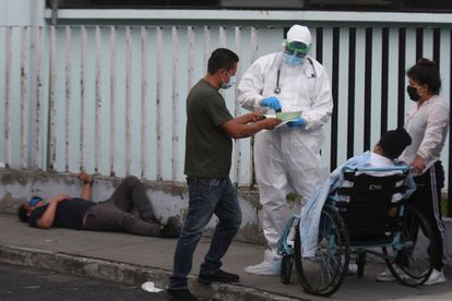 Personal médico atiende a un paciente contagiado de covid-19 en el hospital San Juan de Dios de la Ciudad de Guatemala, el 8 de junio de 2020JOHAN ORDONEZ
