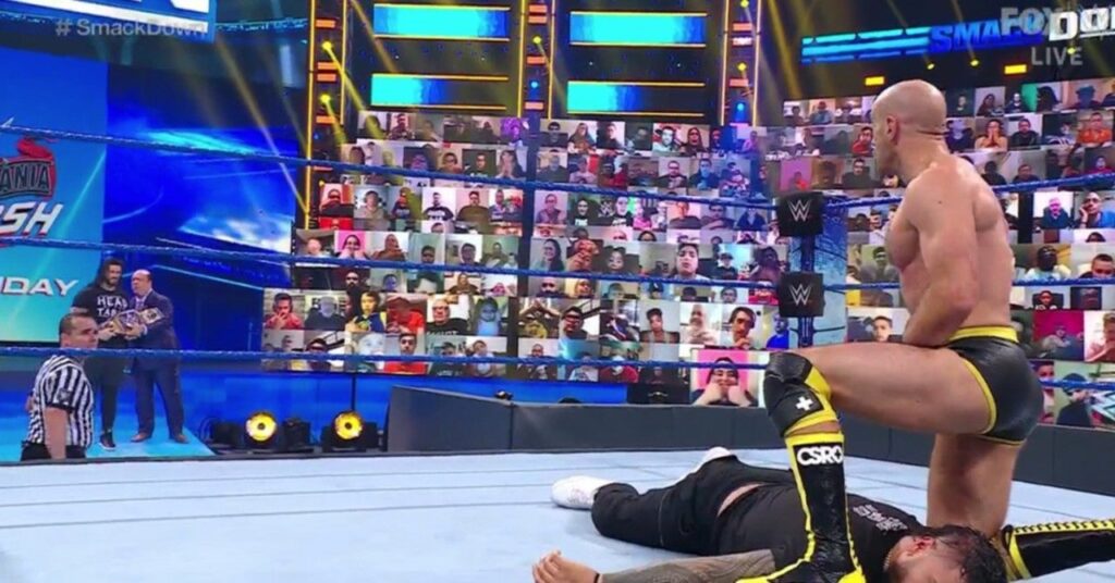 Esta noche, Jimmy Uso tuvo su primer combate desde su lesión el año pasado durante el evento principal de SmackDown de esta noche, y fue contra Cesaro. Cesaro está a punto de enfrentarse a Roman Reigns por el Campeonato Universal en WrestleMania Backlash, y después de una confrontación con Reigns anteriormente en el programa donde Jimmy dijo que Reigns no podía vencer a Cesaro pero sí, desafió a Cesaro a un combate esta noche. Ambos competidores estaban listos para comenzar cuando comenzó la pelea, y Cesaro dio el primer golpe que dejó a Uso tambaleándose un poco en la esquina mientras se recuperaba, y Cesaro lo estuvo sintiendo toda la noche.