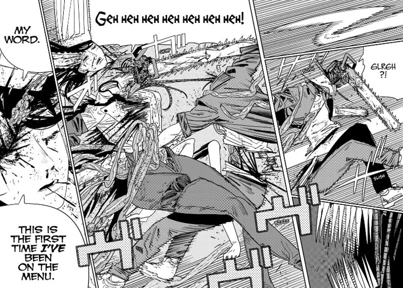 Los capítulos 125 y 126, traducidos por Amanda Haley, continúan narrando el reinado de terror del Diablo Caído en Hombre motosierra mientras busca los ingredientes para su último plato, Asa Root Yoru. Por supuesto, mientras se ocupa de sus asuntos, varios cazadores de demonios están tratando de matarlo, bombardeándolo con lluvias de balas que destripan su cuerpo. Pero Falling Devil no está afectado por todo esto, diciendo que la humanidad aún no ha desarrollado un arma que pueda matarlo. Sin embargo, aunque es posible que la tecnología humana no pueda matarlo, Chainsaw Man puede tener una mejor oportunidad. Cuando aparece atacando a Falling Devil al final del capítulo 125, dice que esta es la primera vez que ella está en el menú. Denji parece estar de acuerdo en el capítulo 126, ya que intenta comérsela, aunque el resultado no es exactamente lo que los fans esperaban.