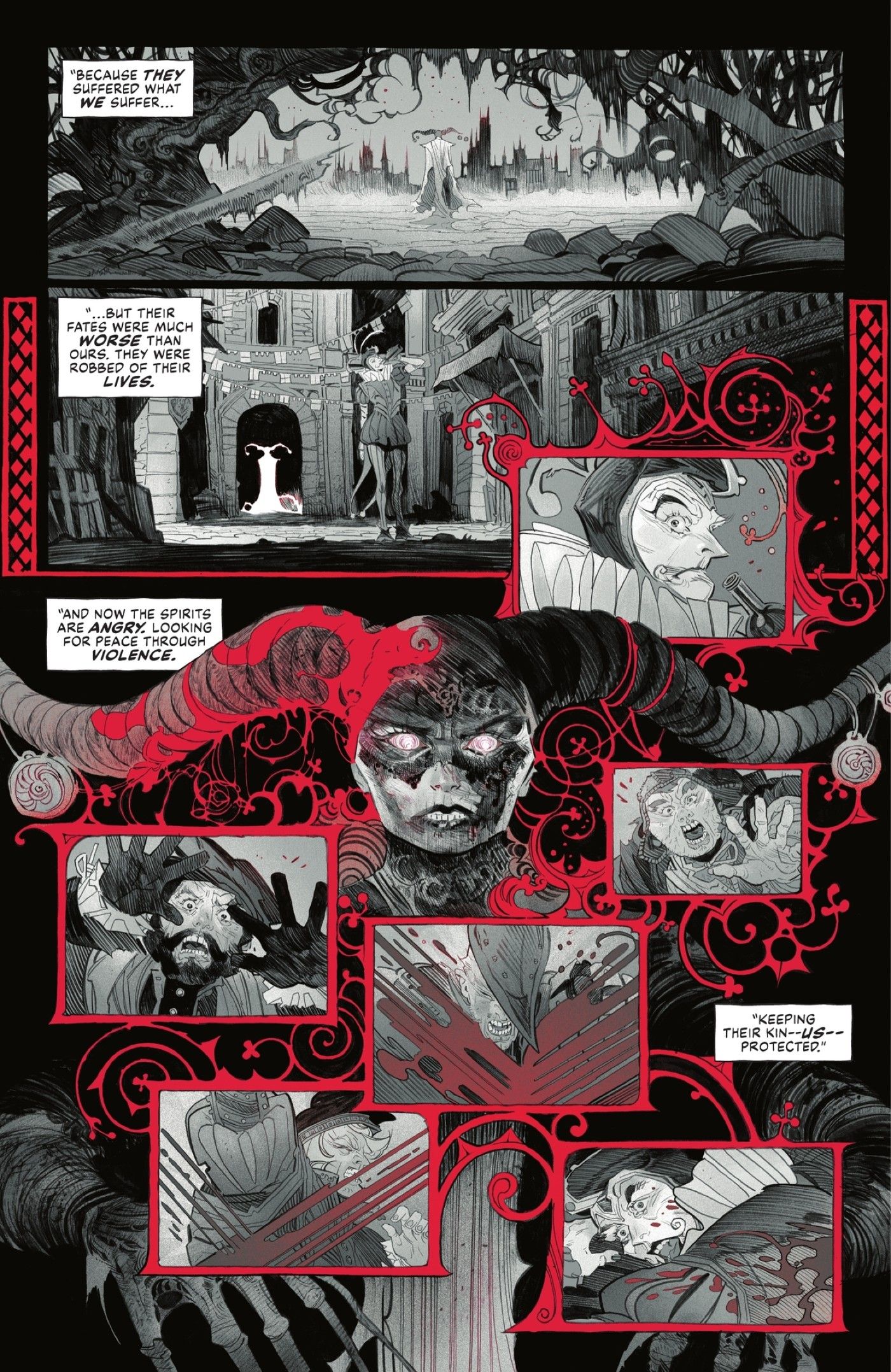“/> Esta nueva, La versión de terror popular de Harley Quinn está llena de posibilidades narrativas.. Los lectores sólo pueden vislumbrar tentadoramente sus poderes, que utiliza para atacar al Joker y a todos los demás hombres que abusan y maltratan a las mujeres. La anciana también dice que Harley y los de su especie a partir de ahora serán odiados y perseguidos por los hombres como si fueran brujas. Las historias de una Harley fantasmal luchando contra cazadores de brujas serían una excelente lectura. harley quinn es una sobreviviente, y Lopes y Evely llevan esto al extremo, dándole temibles poderes que usa para desatar una furia justa sobre sus opresores.