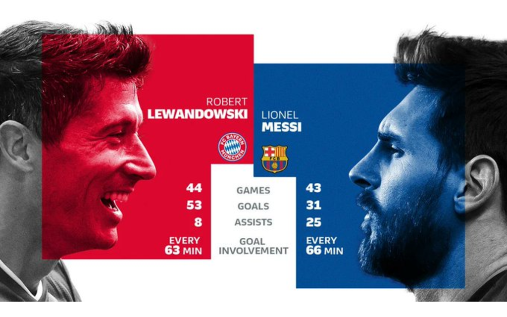 Lewandowski vs Messi en estadísticas. #MiaSanMia#FCBayern#UCL#BARBAY pic.twitter.com/ajn3CfzK0g