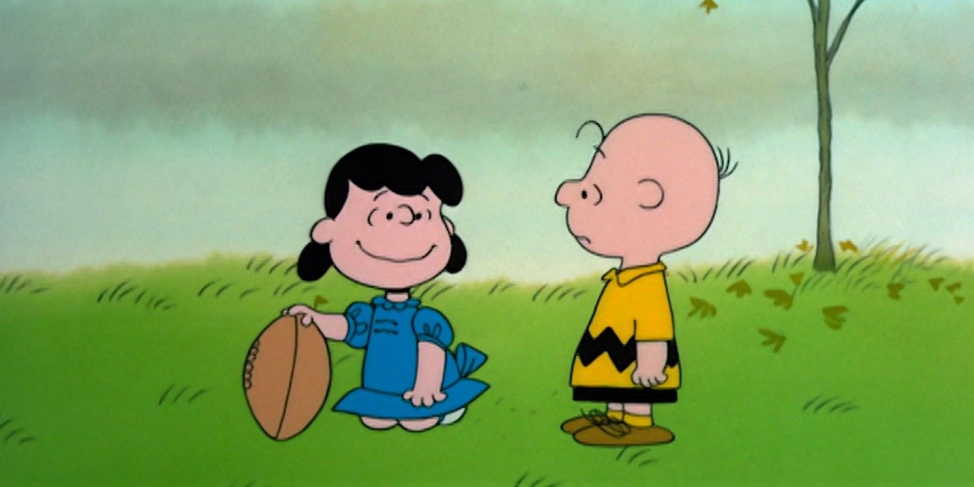 Los intentos de Charlie Brown de patear una pelota de fútbol no incluyeron a Lucy al principio. La primera Miseria La tira que presenta un intento de patada se publicó en noviembre de 1951. Violet era la chica que sostenía la pelota de fútbol, pero cambió de opinión en el último momento, lo que provocó que el héroe de la tira aterrizara de espaldas. Lucy se haría cargo del gag un año después, en noviembre de 1952. Desde entonces, se ha convertido en un hecho recurrente y uno de los más conocidos del cómic, sobre todo tras su inclusión en el especial navideño animado. Es la gran calabaza, Charlie Brown (1966).