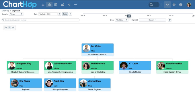 White hizo lo que cualquier buen emprendedor haría. Dejó su trabajo anterior y pasó los últimos años construyendo el tipo de software que sentía que faltaba en el mercado. “ChartHop es la primera plataforma de gestión de organizaciones. Es realmente un nuevo tipo de software de recursos humanos que reúne todos los datos de las diferentes personas en un solo lugar, para que las empresas puedan planificar, analizar y visualizar sus organizaciones de una manera completamente nueva “, dijo White a TechCrunch.