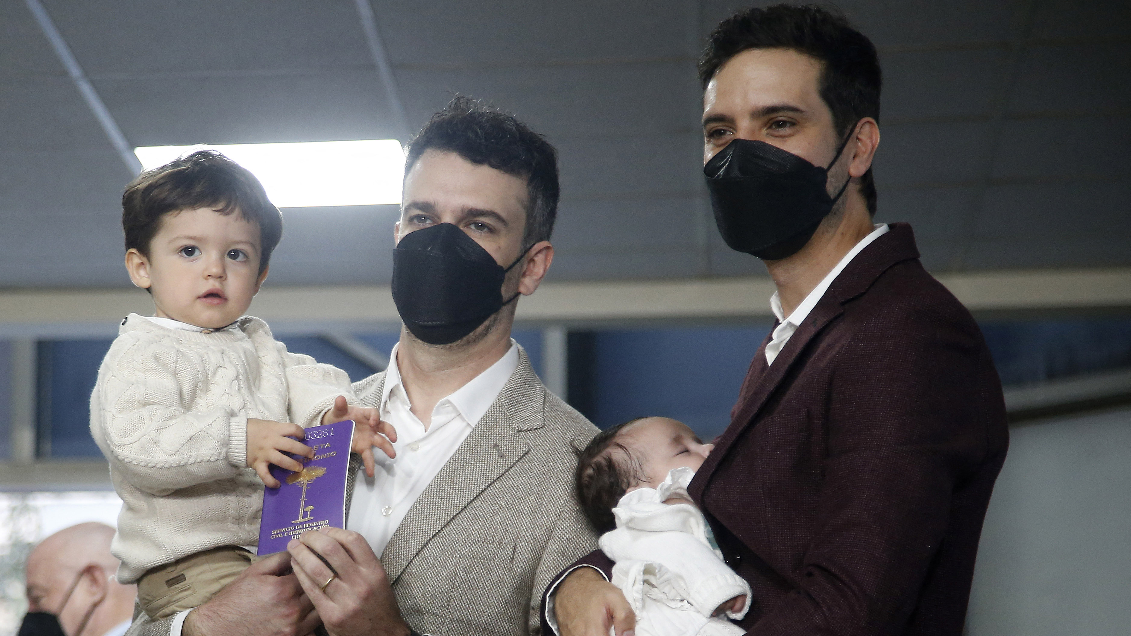 Javier Silva, ingeniero, y Jaime Nazar, odontólogo, son pareja desde hace siete años y viven con sus dos pequeños hijos adoptados, Clemente y Lola María. Desde hace tres años estaban unidos por el Acuerdo de Unión Civil (AUC), hasta ahora el único enlace legal al que podían optar las parejas del mismo sexo.