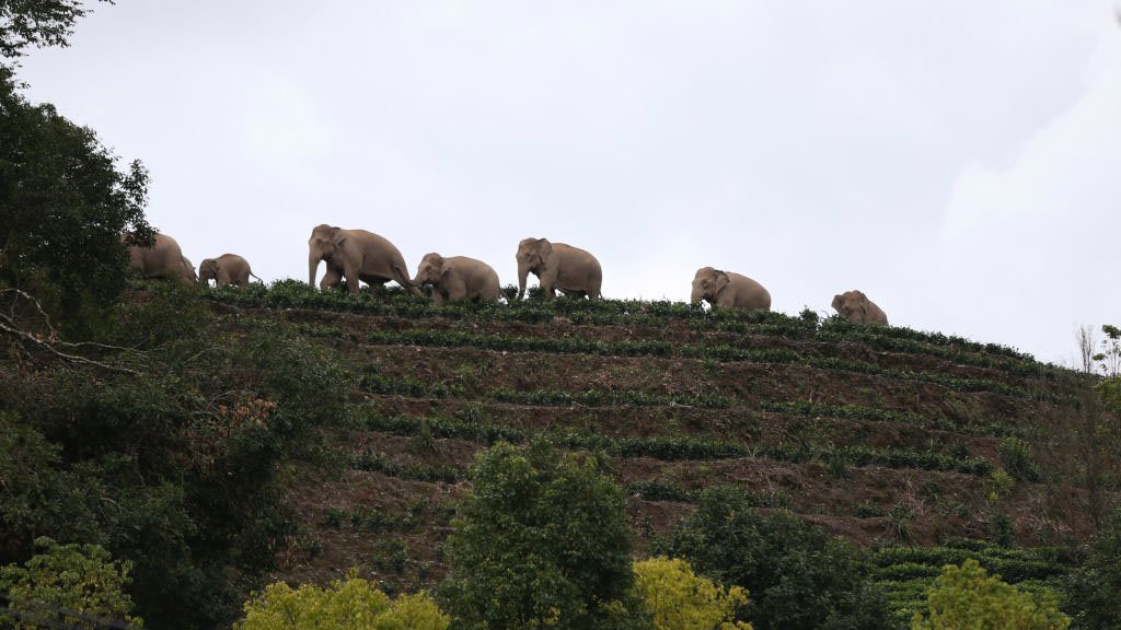 Los elefantes salieron de la reserva hace más de un año por motivos desconocidos y recorrieron más de 300 millas hacia el norte. Tras llegar a las afueras de Kunmig, un centro turístico y de negocios, volvieron a girar hacia el sur, pero aún siguen lejos de la reserva.