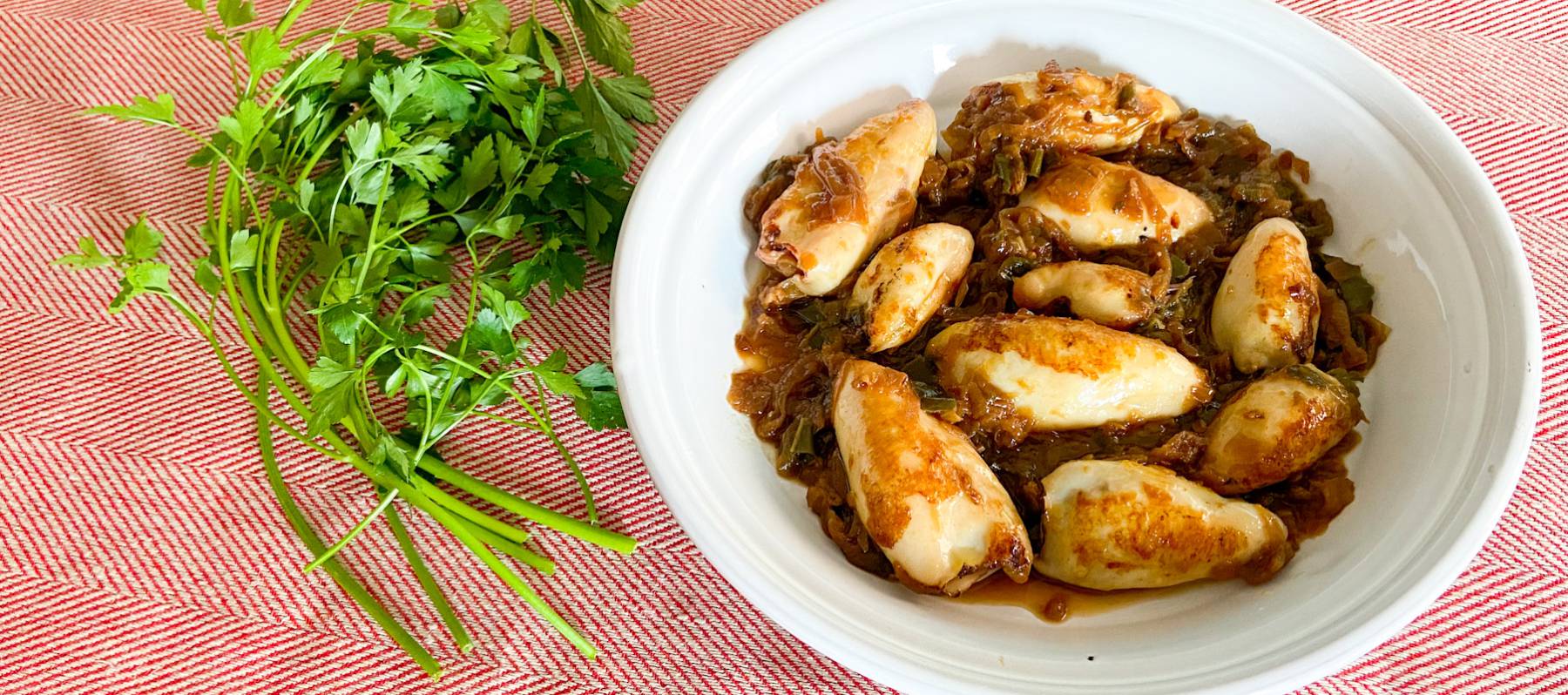 Si en Euskadi pides unos chipirones sin ponerles más apellidos, probablemente llegarán a tu mesa bañados en una salsa negra hecha con su tinta. La identificación de este animal marino con su receta más clásica y popular es profunda, pero existen otras formas de tratarlo igual de vascas que no deberían ser olvidadas. Una de ellas son los llamados chipirones a lo Pelayo, que apuestan por la cebolla muy pochada como principal compañero de viaje del cefalópodo.
