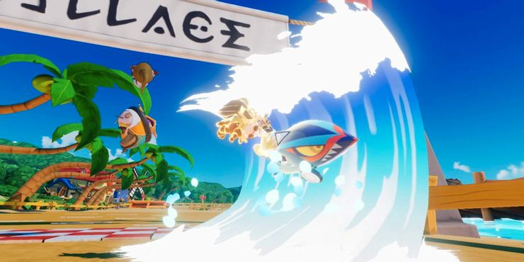 - Asura: Tsunami: el kart de Asura es en realidad una versión transformada de Leviathan, por lo que se basa en el hechizo de invocación de Leviathan del Fantasía Final serie. Asura se sube a la ola en un estado potenciado y cualquier jugador que entre en contacto con ella resultará dañado. El jugador puede manipular la dirección del Tsunami.