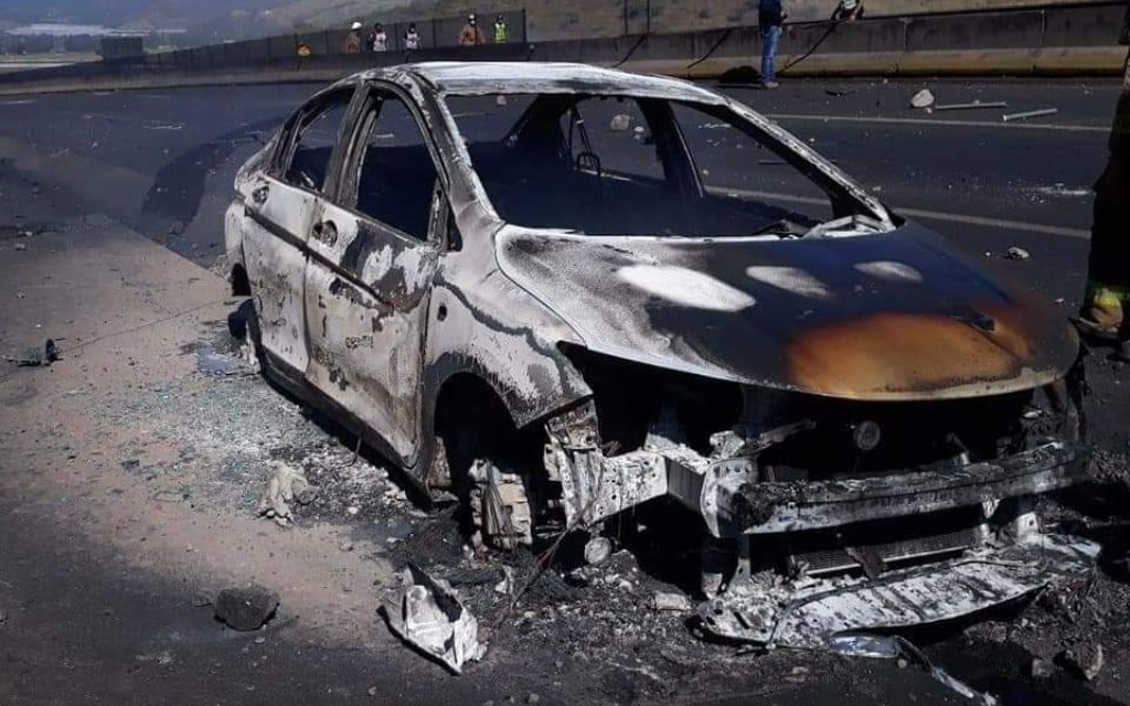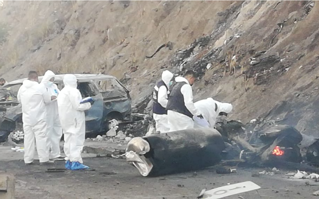 “Como consecuencia de la onda expansiva resultaron incinerados los vehículos Kia, tipo vagoneta y el Honda, tipo Civic, que transitaban en sentido a Guadalajara, Jalisco; y como resultado de dicha explosión terminó con daños un quinto vehículo marca Ford, tipo Superduty, que se encontraba detenido sobre la cinta asfáltica”, apuntó la institución.