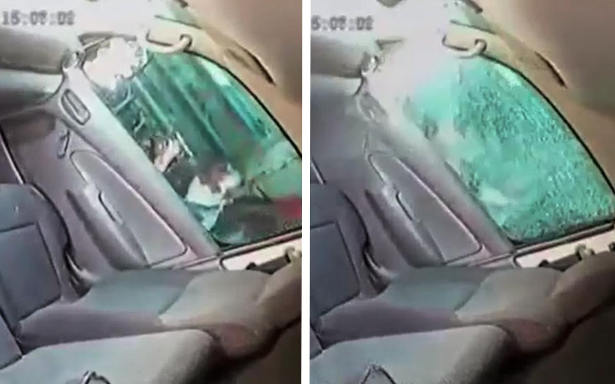 En un video difundido ampliamente en redes sociales, se puede ver al operador de una combi detenerse en una parada, cuando un sujeto con cubrebocas blanco aparece en la ventana del copiloto y le toca la ventana para que abra la puerta del vehículo.