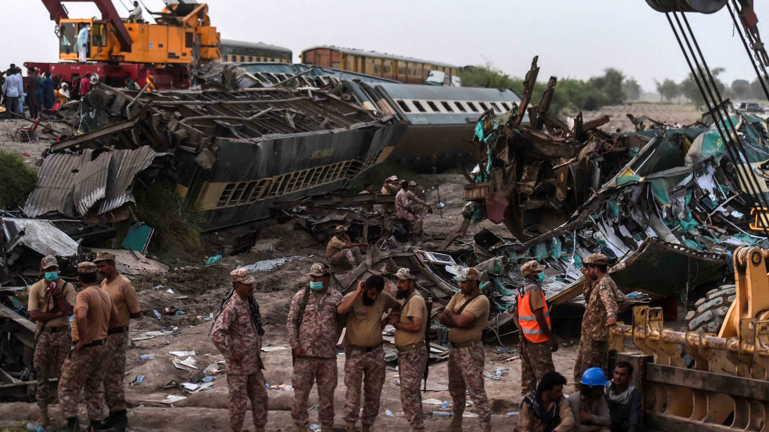 Ingenieros del ejército y soldados desplazados desde una base próxima ayudaron en el rescate y, horas más tarde, llegó maquinaria pesada desde Ghotki para abrir algunos de los vagones.