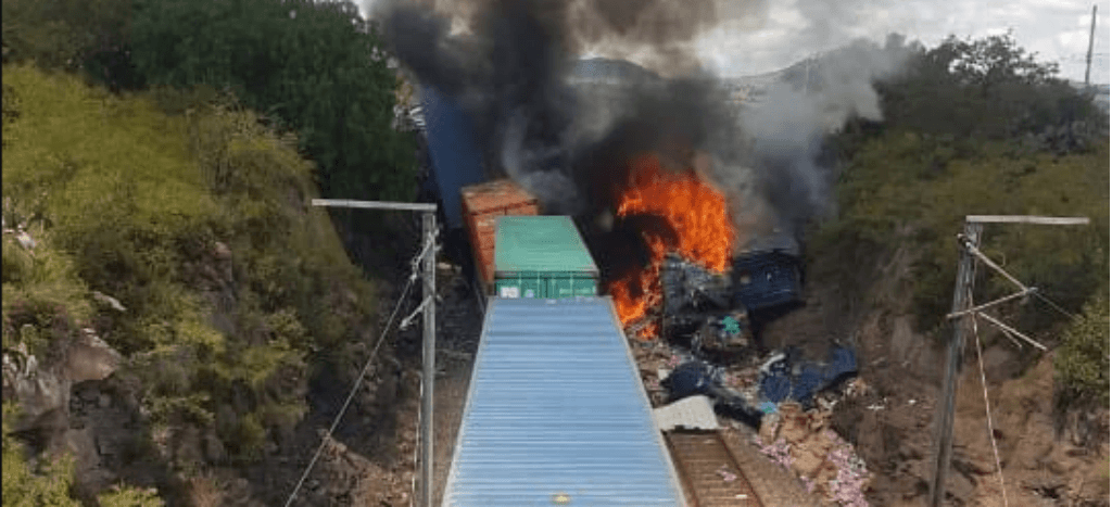 Cuatro personas resultaron lesionados luego de que dos trenes chocaran en el municipio de Nopala, Hidalgoque derivó en el incendio de uno de ellos por el derrame de su combustible.